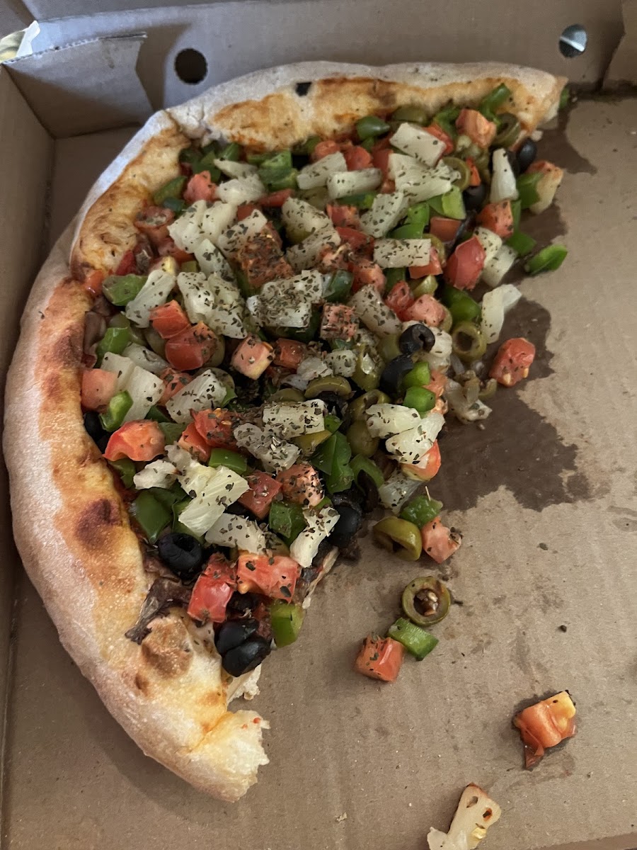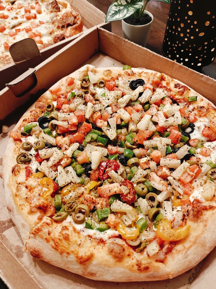 This pizza was seriously delicious! Also, the crust was nice bake. The toppings were fresh and colorful.